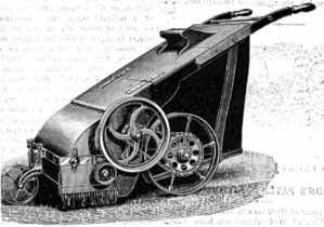 As mentioned, pedestrian-powered lawn sweepers were available earlier than Challis’ pony-drawn design; several featured in gardening magazines.