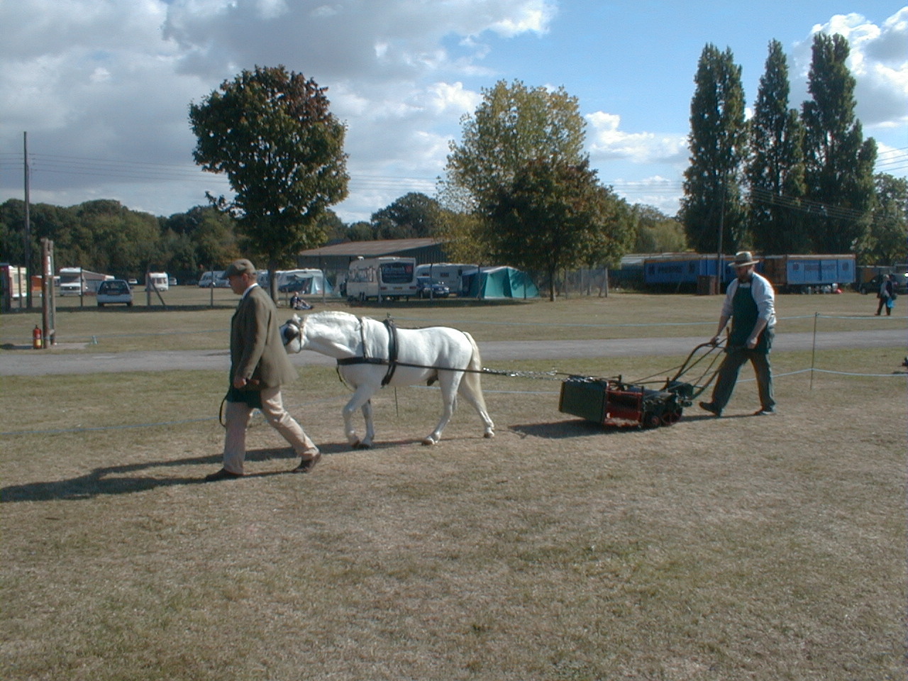 For many years we have shown working displays using the pony mower, along with our great friend Anthony Parkes, Past Head of Livery at Buckingham Palace, and of course Justice equally owned by Her Majesty the Queen and Anthony.