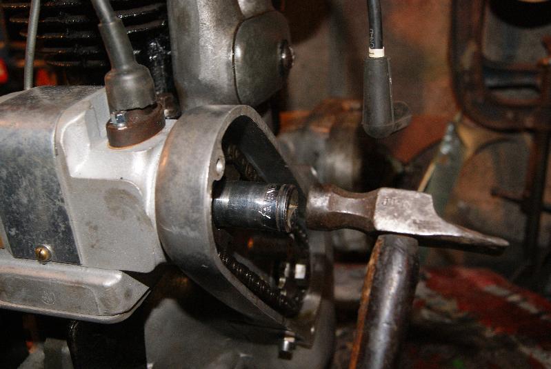 Notice I say “tap”; because the tapers are so well matched you don’t need to thump them to get them to stick together. Take a look at the photo’s and you’ll see that I’ve used a small tack hammer to achieve the result. If you use anything bigger you stand a real chance of damaging the bearings in the magneto.
