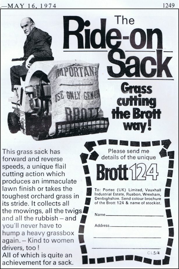 BROTT 124 with a Briggs and Stratton 8hp engine, and Ariens Hydrostatic Transmission. The Brott 320 and the Brott Cropet were also produced by Portec at Ruabon.