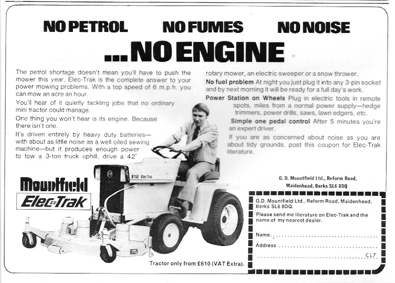 Elec Trak battery tractors and equipment were imported into the UK by Mountfield.