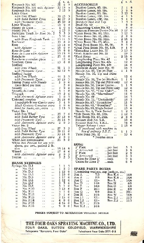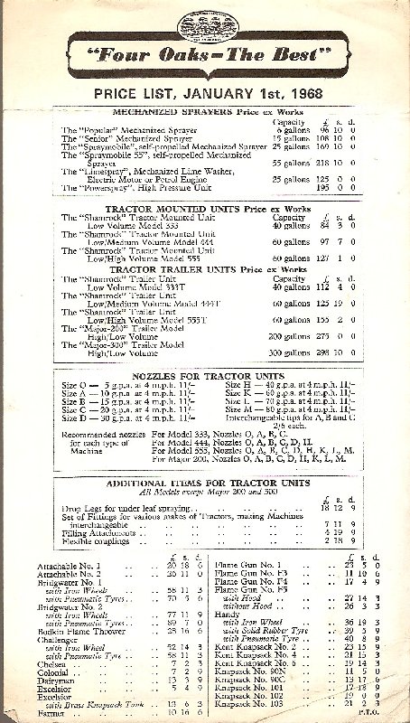 - Four Oaks price List 1968