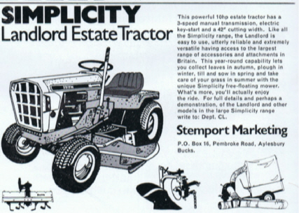 - Simplicity Landlord Garden Tractor Vintage Image 1974