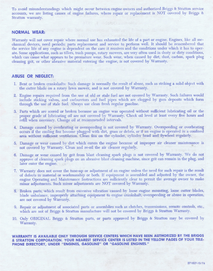 - Briggs and Stratton Engine Warranty 1976 UK Image 2