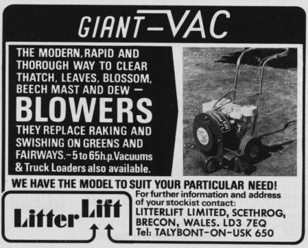 - Andrews generator, Cyclone spreader, Bluebird Scarifier, Billy Goat Vaccuum
