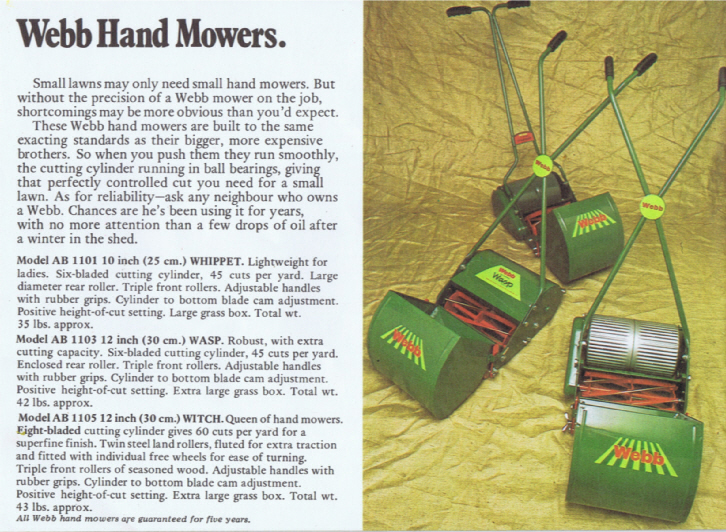 Webb Whippet, Wasp, Witch Hand Mowers 1973