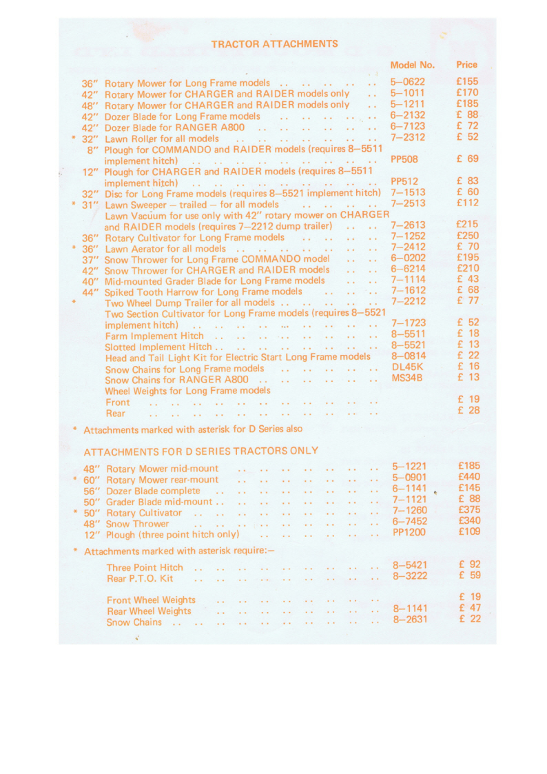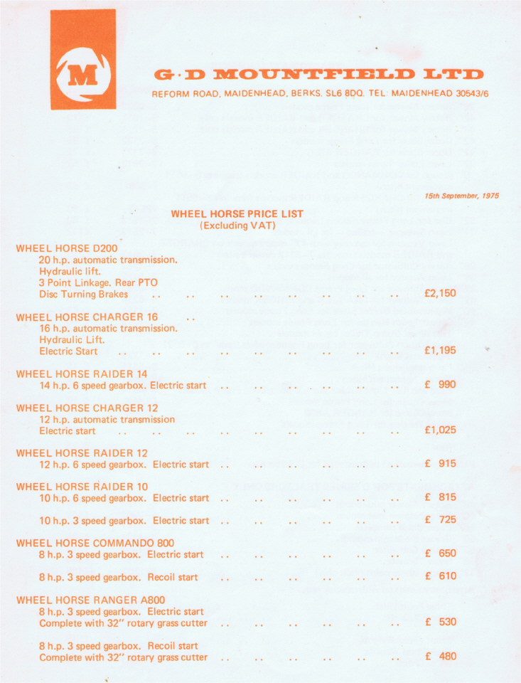 - Wheel Horse Price List UK 1975