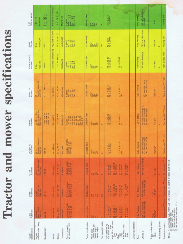 - Wheel Horse Specifications 1975