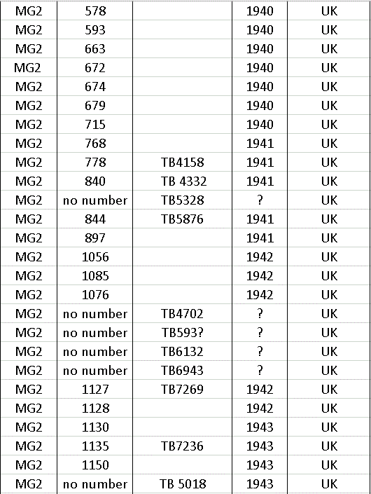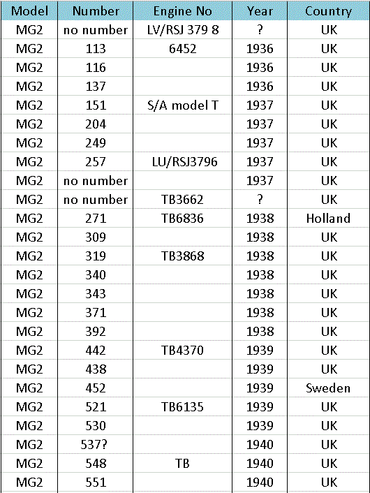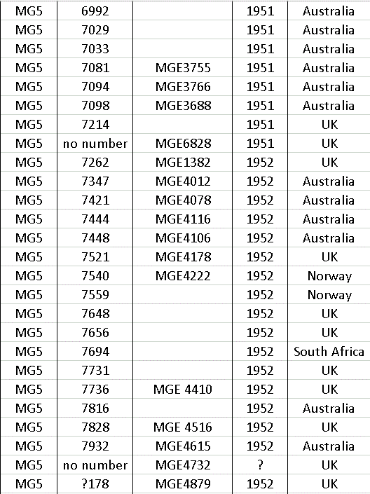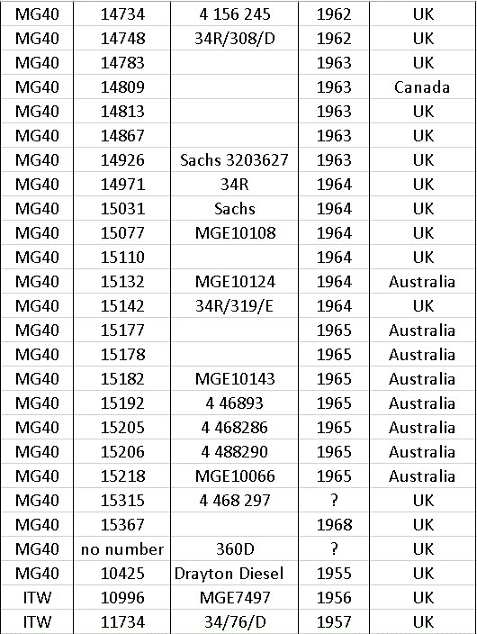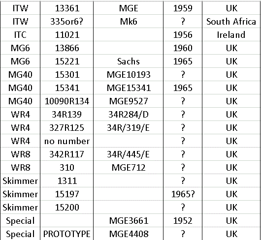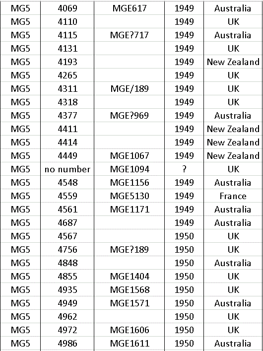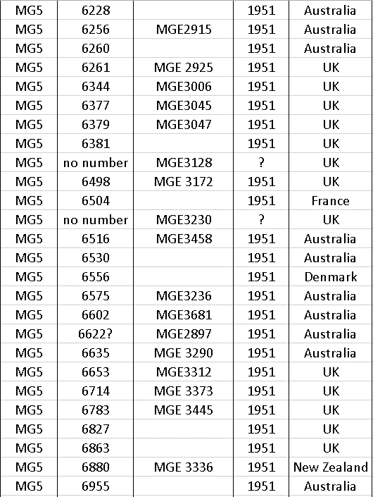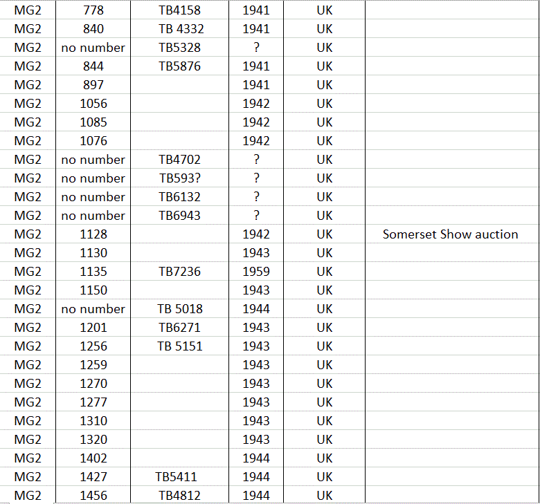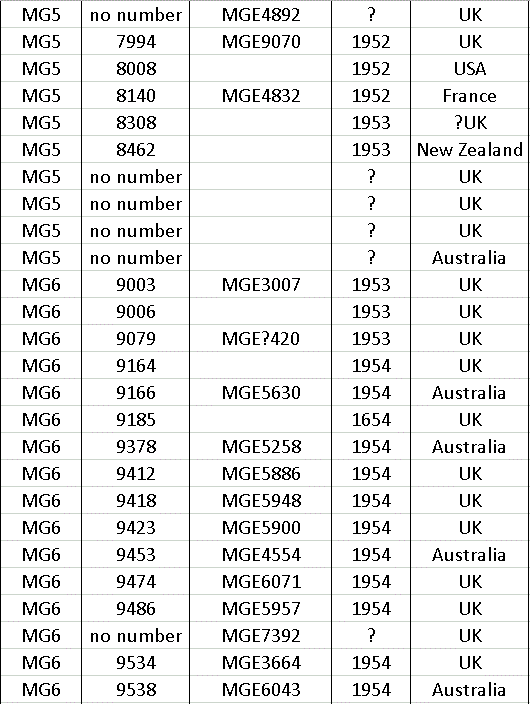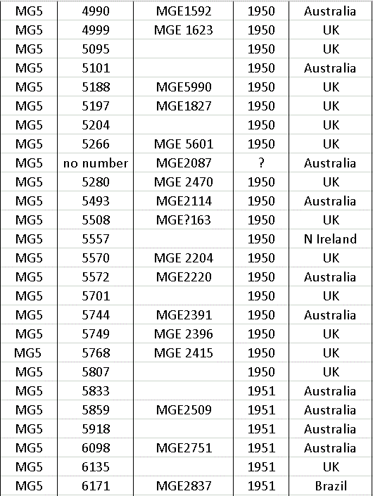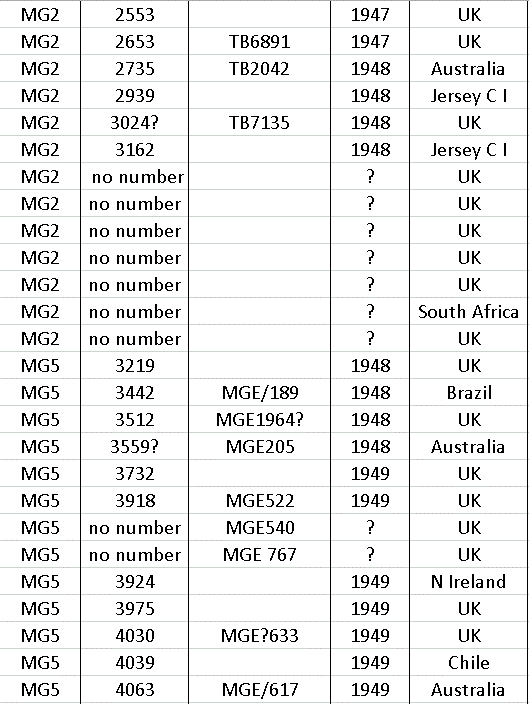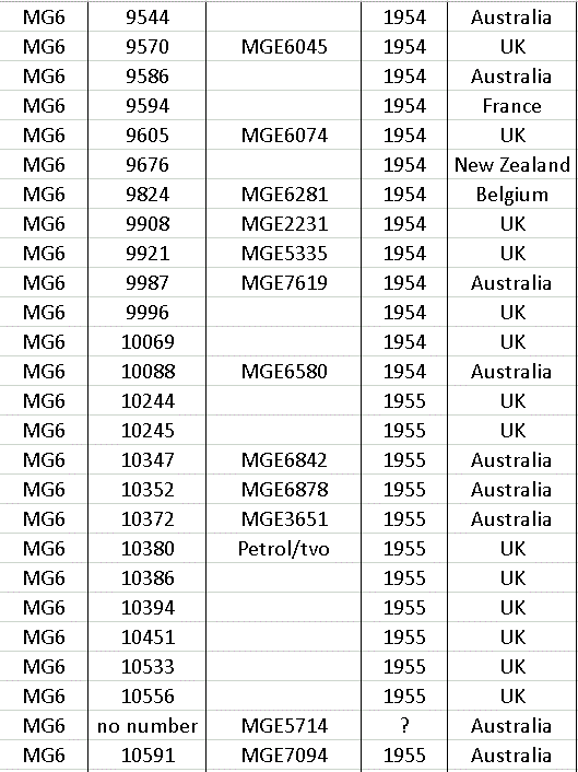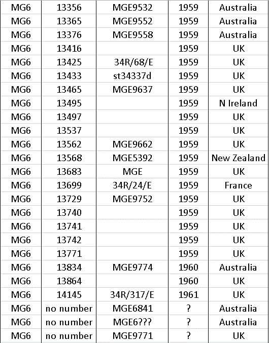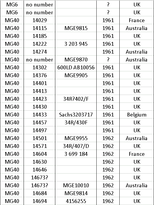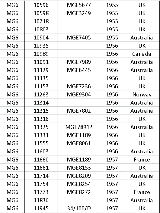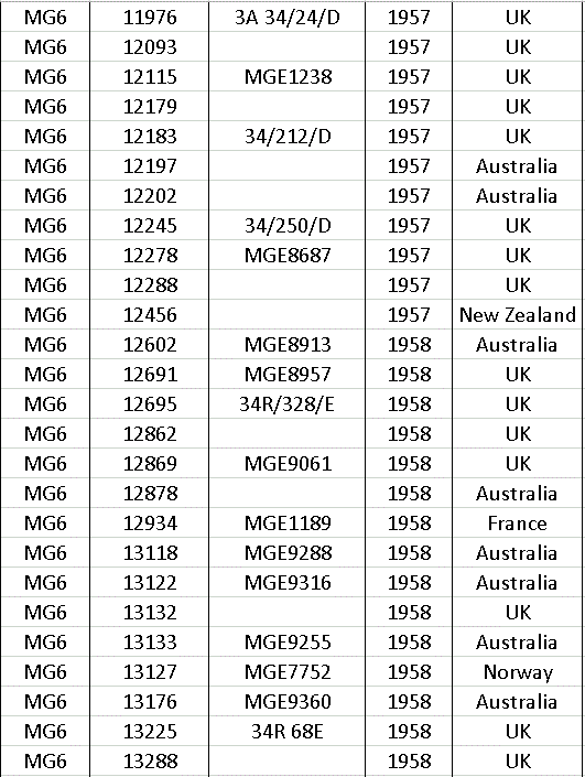 After production ceased in 1966 a few MG’s were made up from spares still held at the factory, so at the end of the list there a few machines with numbers that do not appear on the year list.